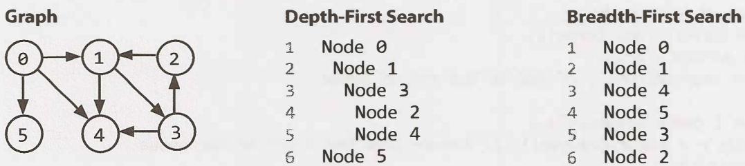 The two most common ways to search a graph are depth-first search and breadth-first search. In DFS, we start at the root (or another arbitrarily selected node) and explore each branch completely before moving on to the next branch. We go deep first.