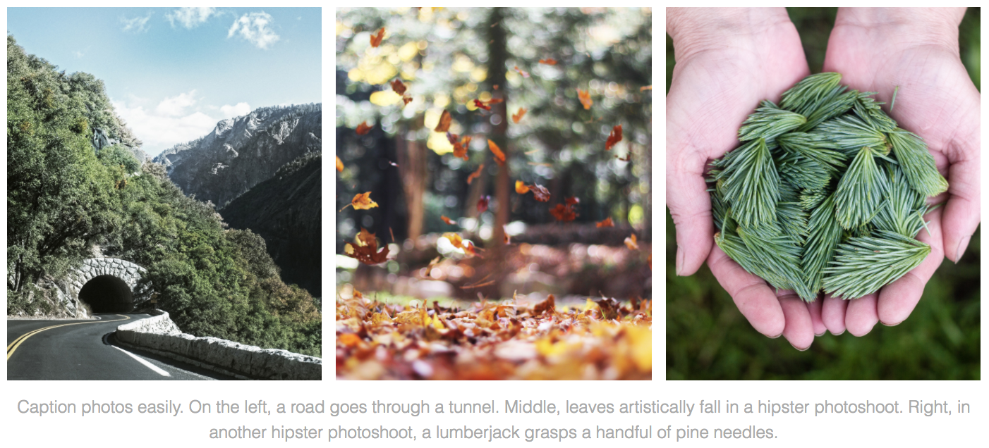 Photo formatting is made simple using rows of a 3-column system. Make photos 1/3, 2/3, or full width. Easily create beautiful grids within your blog posts and projects pages: